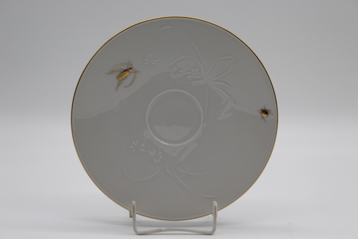 Feldblumenrelief auf Bord mit Goldrand und goldenen Insekten